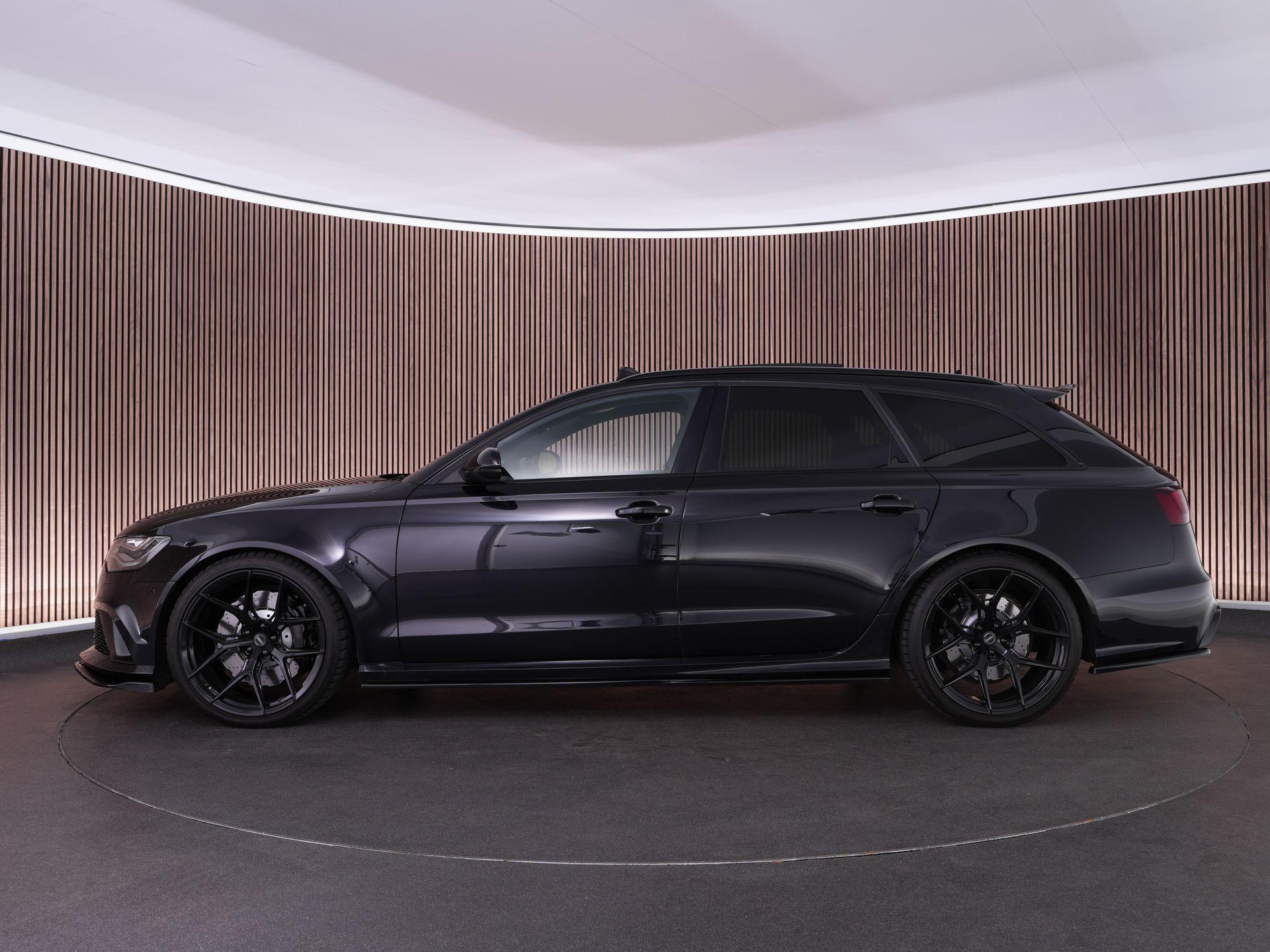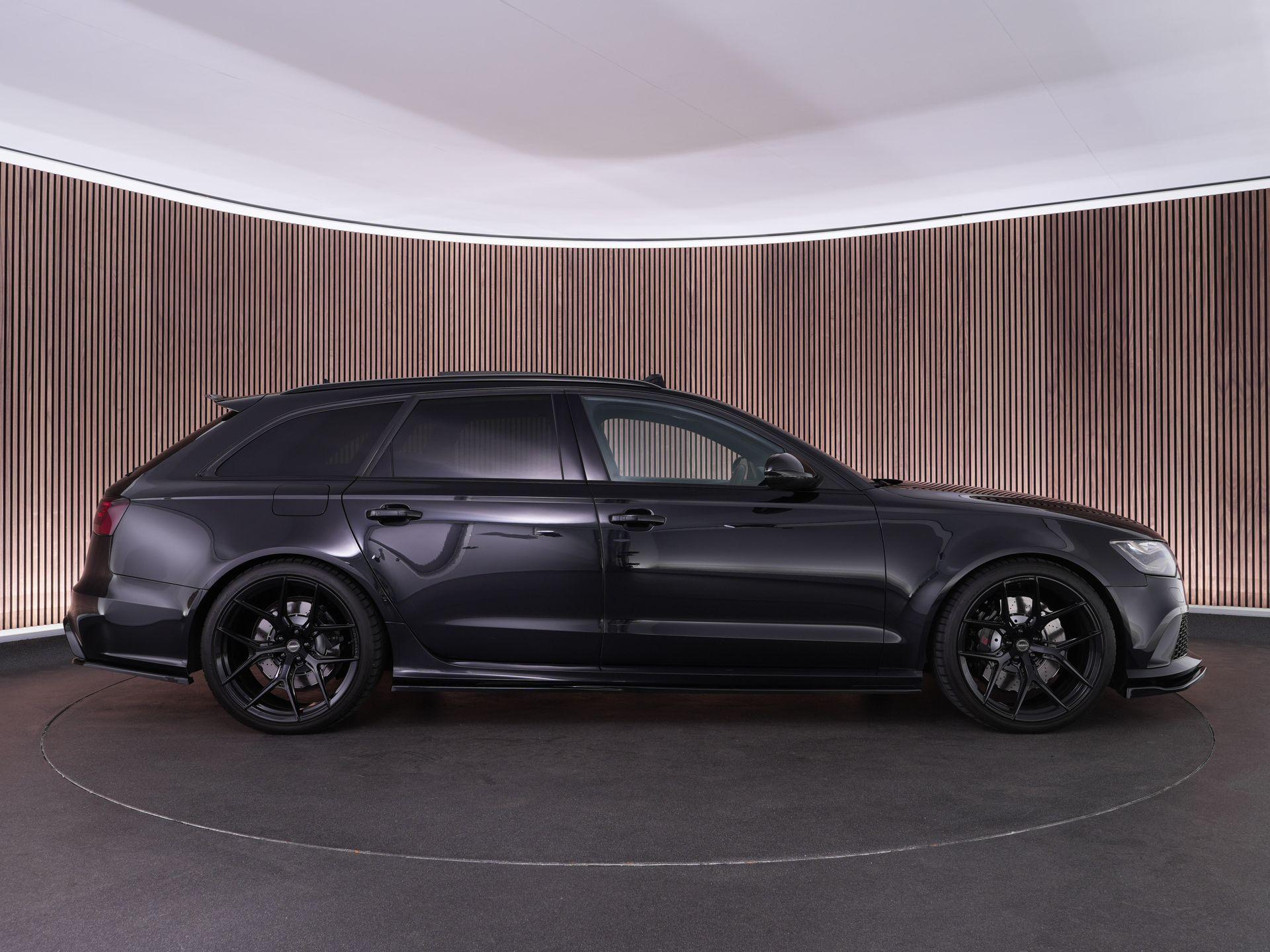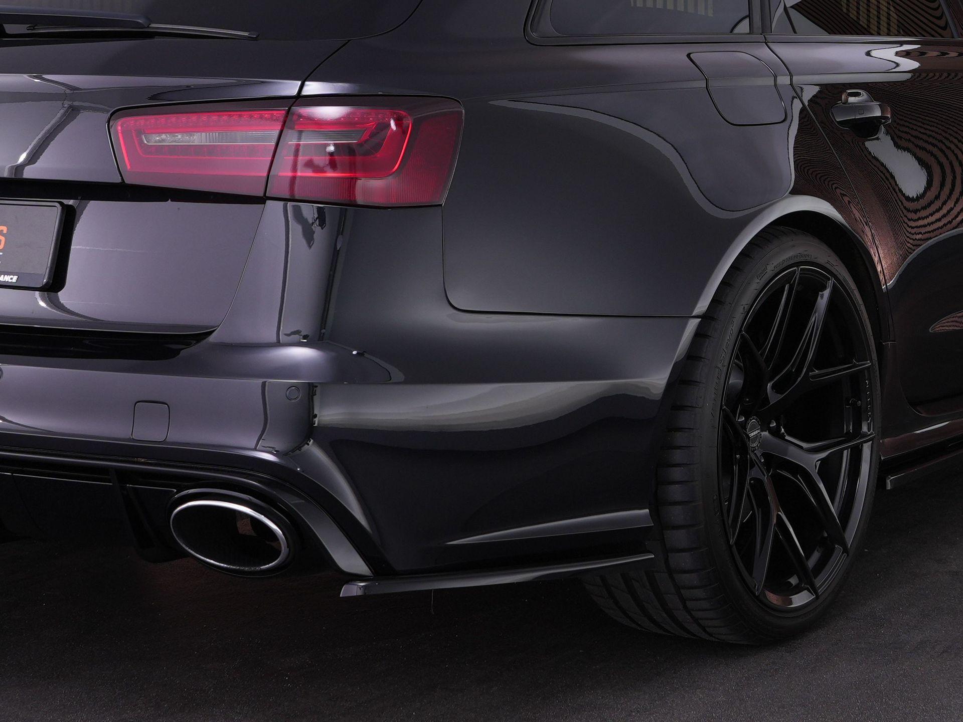 Audi RS6 Avant 4.0 TFSI V8 in de tijdloze kleur Phantom Black parelmoer!. Deze geliefde en brute gezinswagen is door de vorige eigenaar aangepast met 21" Vossen Wheels, een Maxton splitterset en een verlagingsset, waardoor de auto nog veel agressiever smoelt!