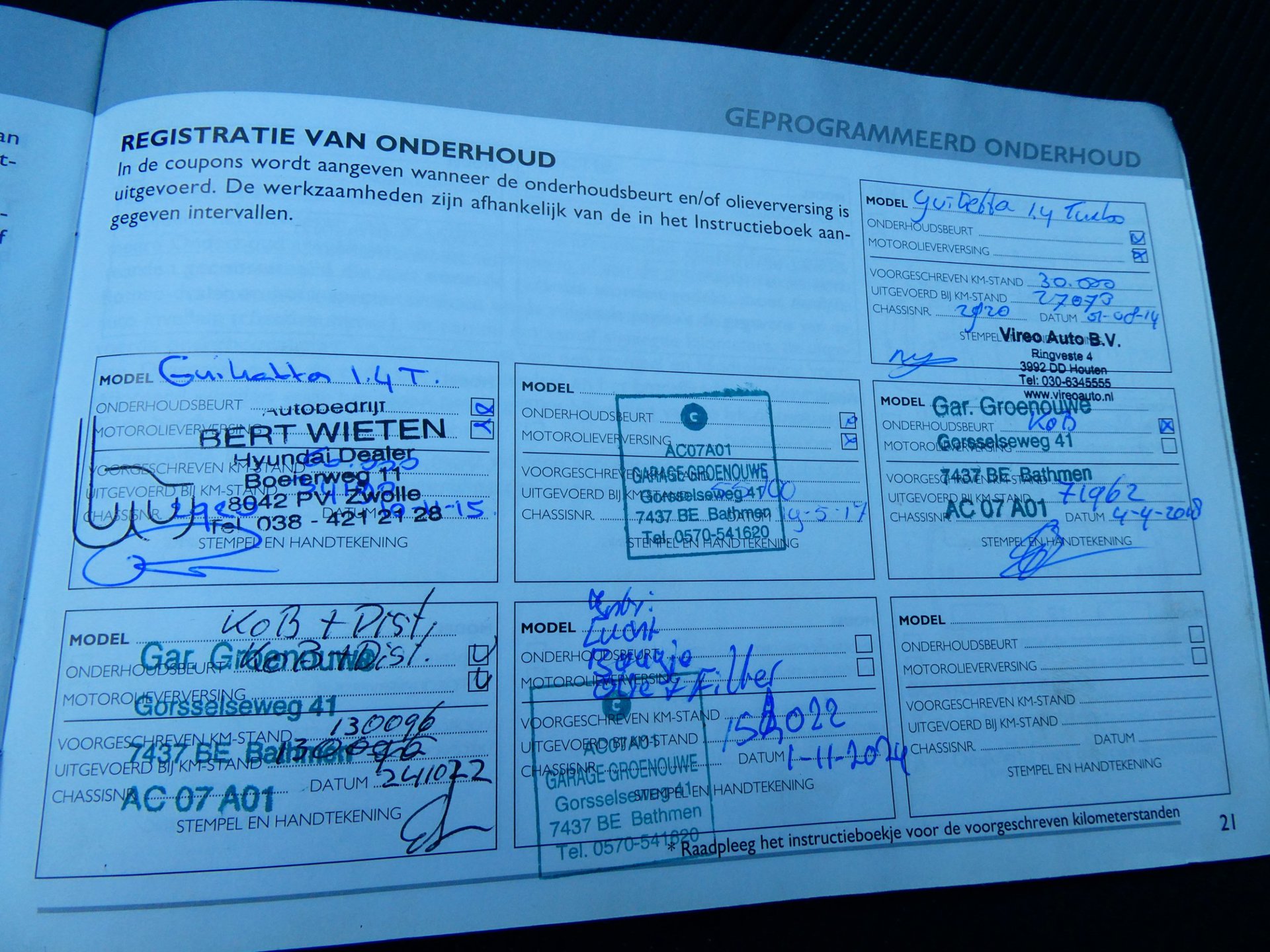 Onderhoudsboekjes: Aanwezig