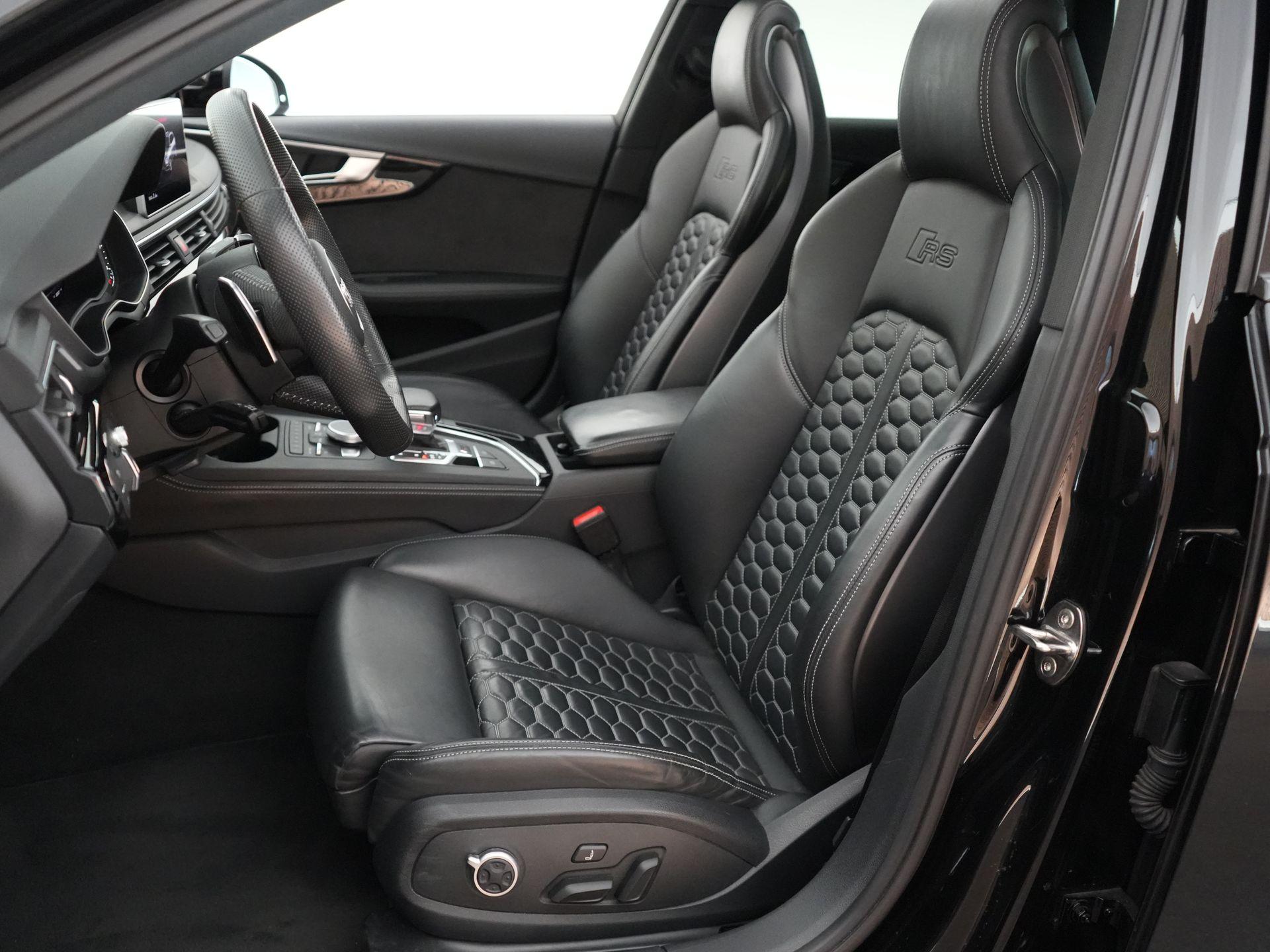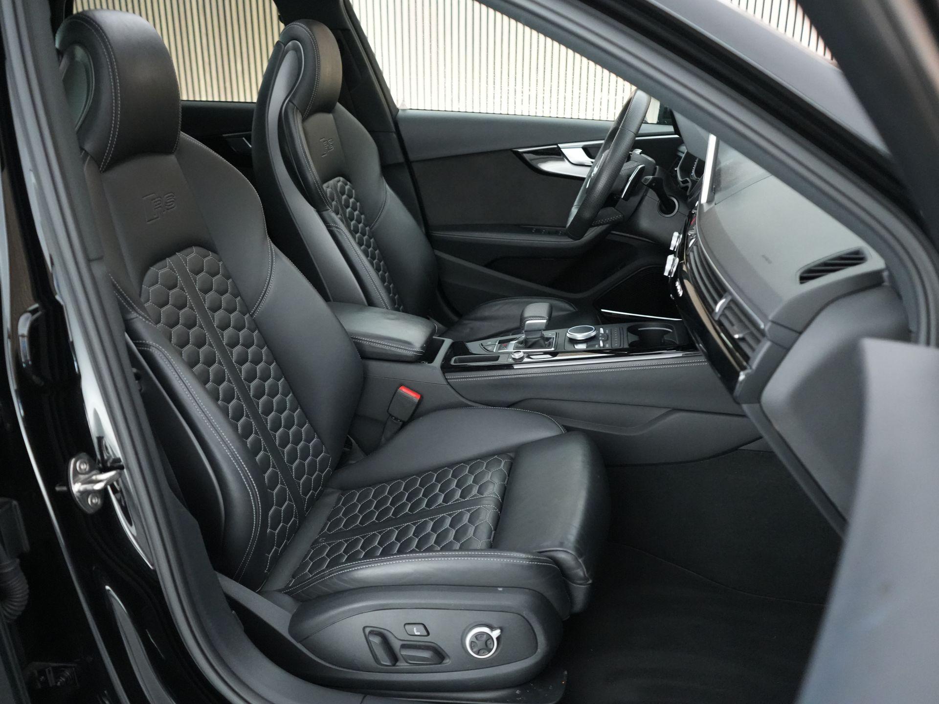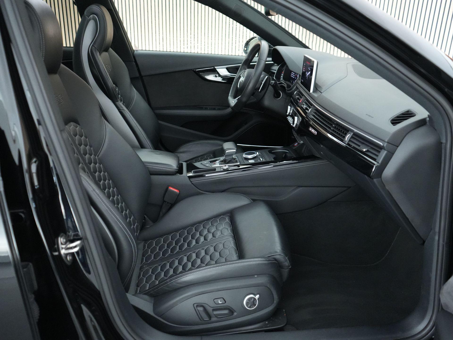 Dit exemplaar is smaakvol samengesteld en bijzonder compleet uitgevoerd. Denk aan het Sportonderstel Plus met Dynamic Ride Control, sportuitlaat, panoramadak, RS-sportstoelen, Fine Nappa lederen bekleding met honingraatstiksel, stoelverwarming voor en achter, massagefunctie voorin, Bang & Olufsen 3D sound, head-up display, 360-graden camera, Matrix LED-verlichting, adaptieve cruise control, lane assist, side assist en het volledig zwarte optiekpakket. De combinatie met de Audi Sport gesmede 20 inch velgen in antracietzwart maakt het geheel helemaal af.