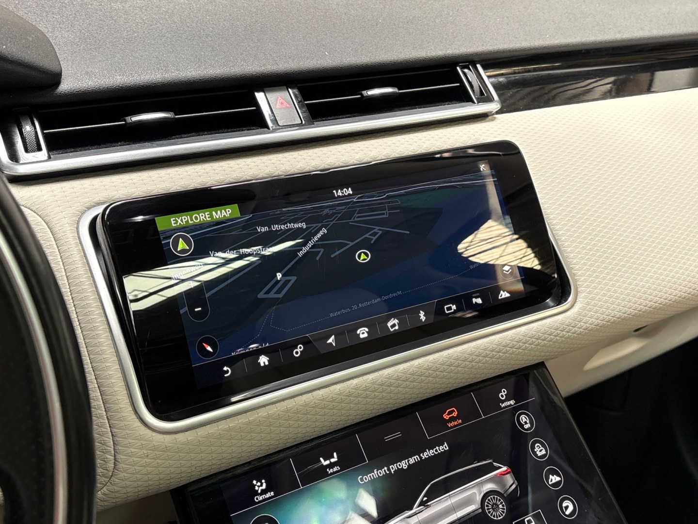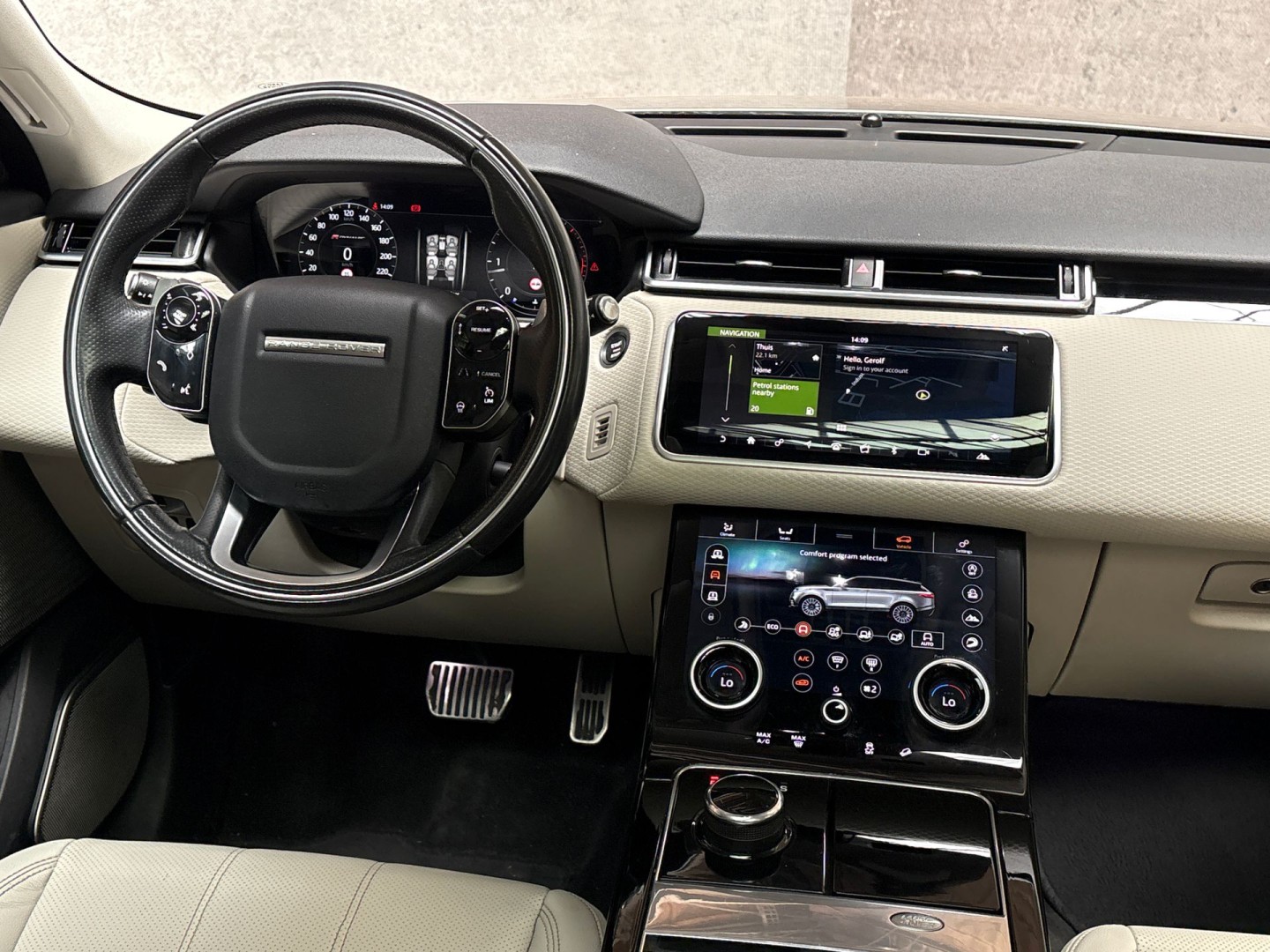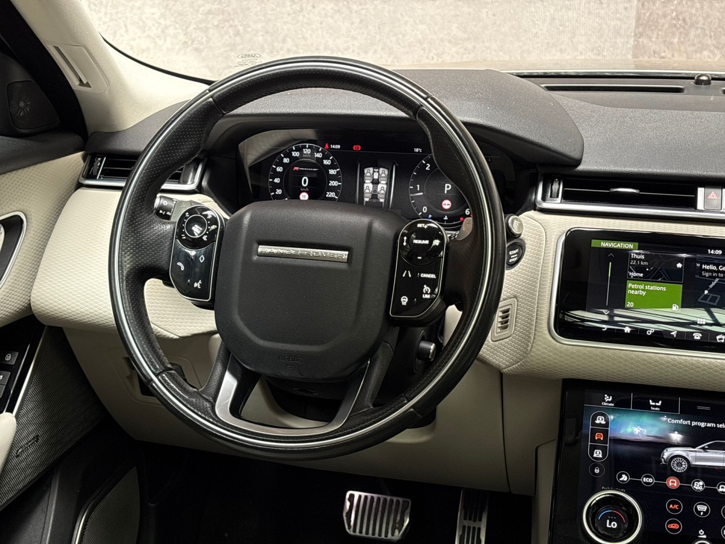 Het slim uitgedachte digitale dashboard toont alle essentiële ritinformatie in één oogopslag. Nekkramp en verdraaide schouders zijn verleden tijd. Door de achteruitrijcamera is iedere meter achter de auto glashelder in beeld. Adaptive cruise control is veilig en comfortabel. De snelheidsregelaar houdt automatisch afstand tot het voertuig dat voor u rijdt. Uw smartphone is tegenwoordig de sleutel tot heel veel. Ook voor deze auto. Remote services, noemen we dat. Waar u ook bent, contact houden is een eitje. Het high performance audiosysteem produceert krachtige bassen en heldere hoge tonen. Deze Land Rover is voorzien van dashboard met spraakbediening, navigatiesysteem, WIFI-hotspot, achteropkomend verkeer waarschuwing, automatische airconditioning en schakelpaddles aan het stuur.