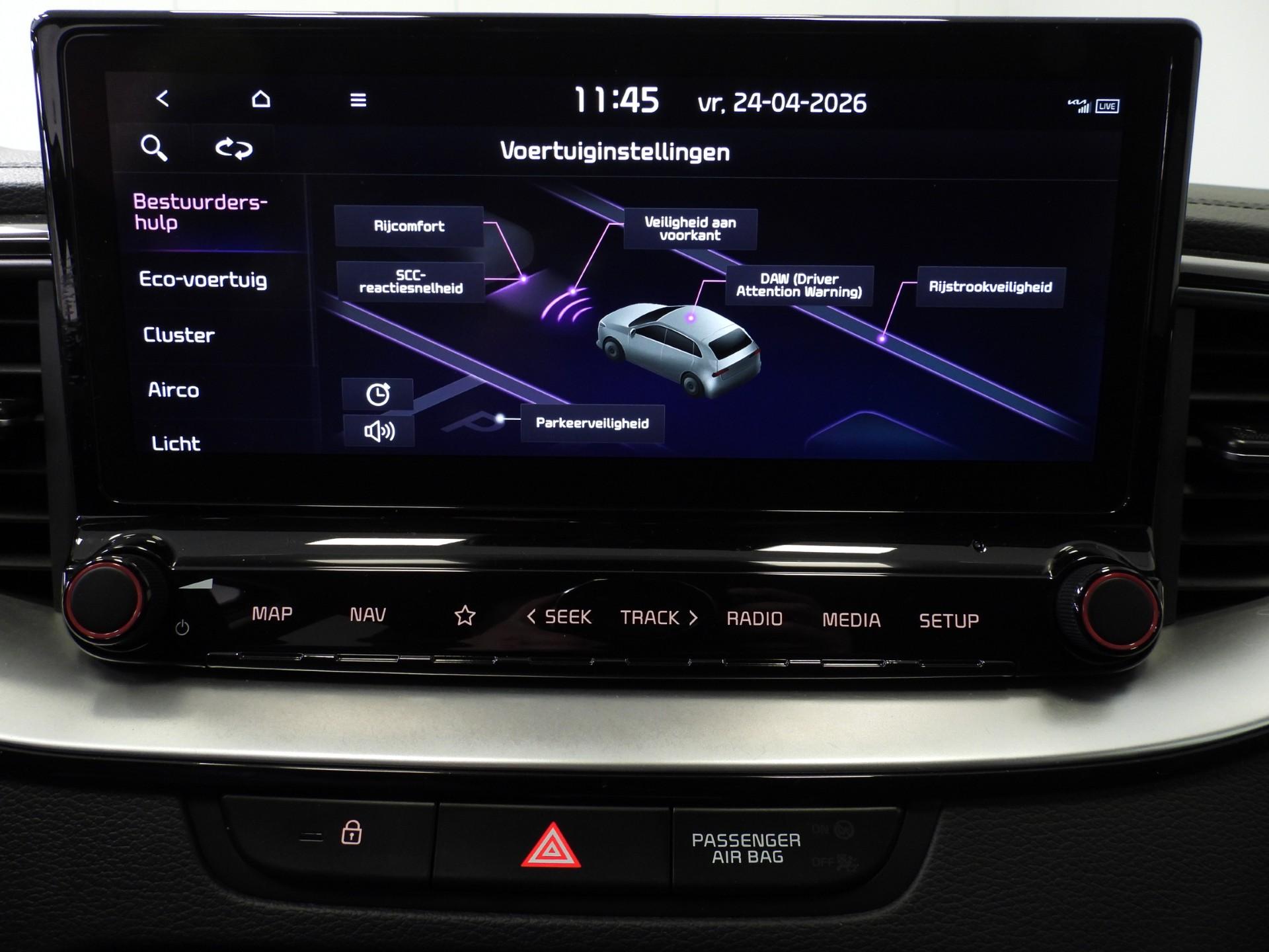Nooit meer parkeerschade dankzij de achteruitrijcamera. Adaptive cruise control houdt de ingestelde snelheid vast en houdt afstand tot het voertuig voor u. Filerijden zal nooit een pretje worden. Maar met de file assistent wordt het wél relaxter. Deze geavanceerde optie zorgt dat u automatisch de juiste afstand tot de voorligger houdt en remt bovendien als de rij tot stilstand komt. Als u regelmatig met een aanhanger of een fietsendrager op pad bent, is de afneembare trekhaak een praktische extra. Deze Kia Ceed Sportswagon is 'connected'. Belangrijke functies worden permanent gemeten en zijn uit te lezen via een speciale app, ook op afstand. De uitrusting van deze auto is met dashboard met spraakbediening, climate control, DAB ontvangst, regensensor, keyless entry en automatisch dimmende binnenspiegel behoorlijk compleet.