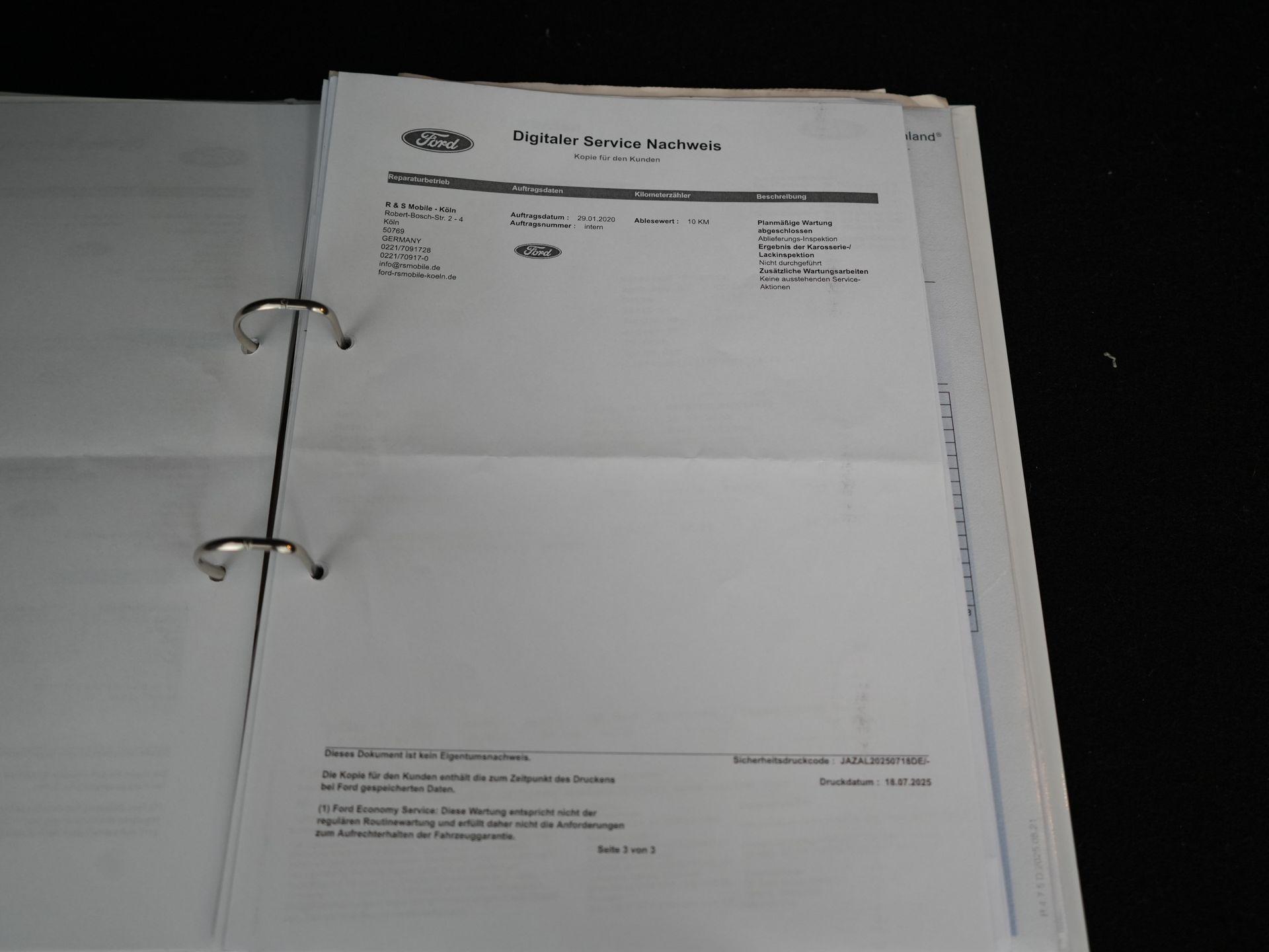 De onderhoudshistorie is keurig aanwezig en uitgevoerd bij Ford-dealers. Recent, bij 101.755 km, is er nog een grote onderhoudsbeurt uitgevoerd waarbij onder andere de olie, het oliefilter, interieurfilter, luchtfilter, bougies, remvloeistof én de remschijven en remblokken vóór zijn vervangen.