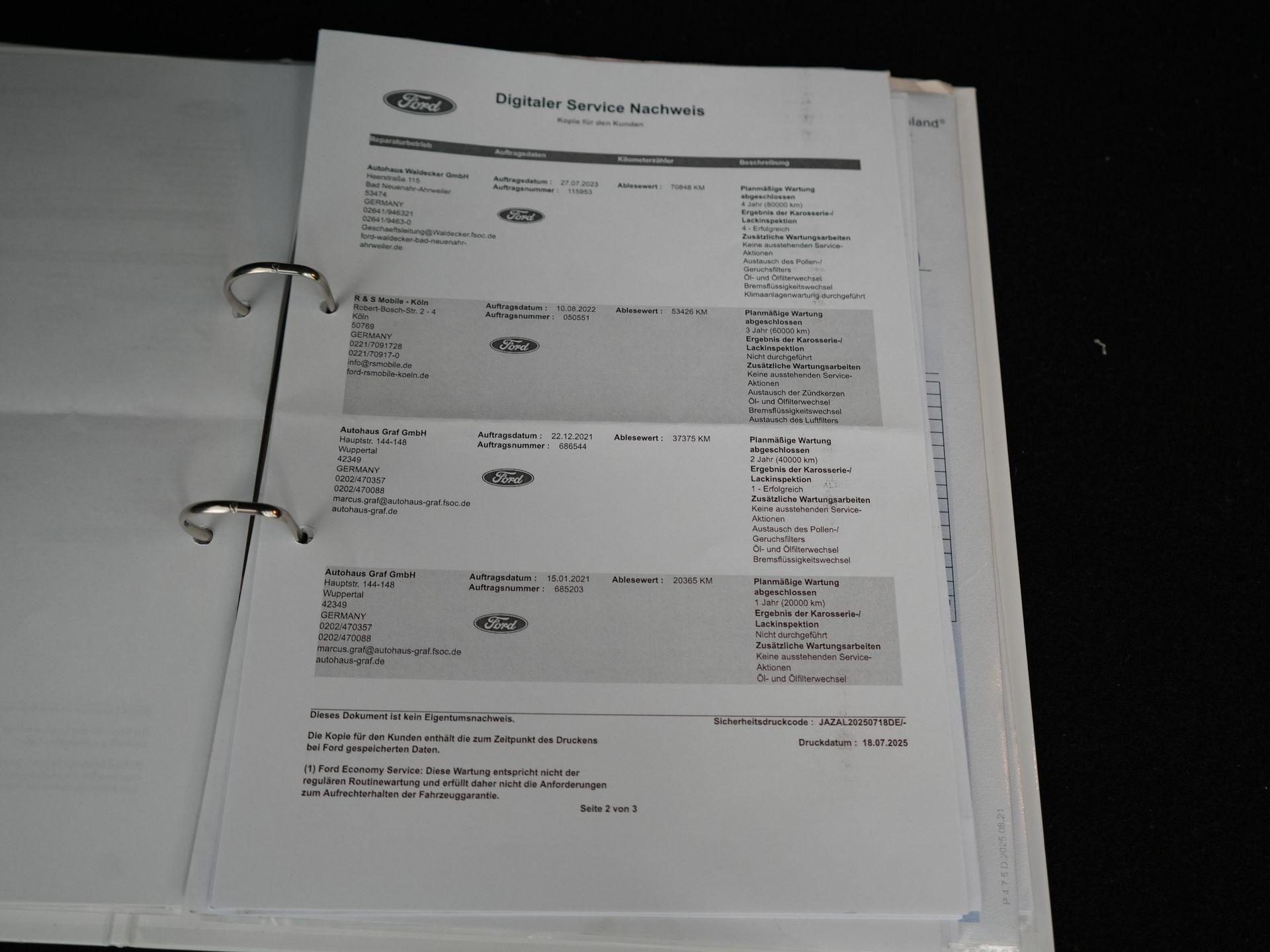 27-07-2023 – 70.848 km – Ford onderhoud 4 jaar / 80.000 km uitgevoerd, carrosseriecontrole succesvol voltooid, interieurfilter vervangen, olie en oliefilter vervangen, remvloeistof vervangen en aircoservice uitgevoerd